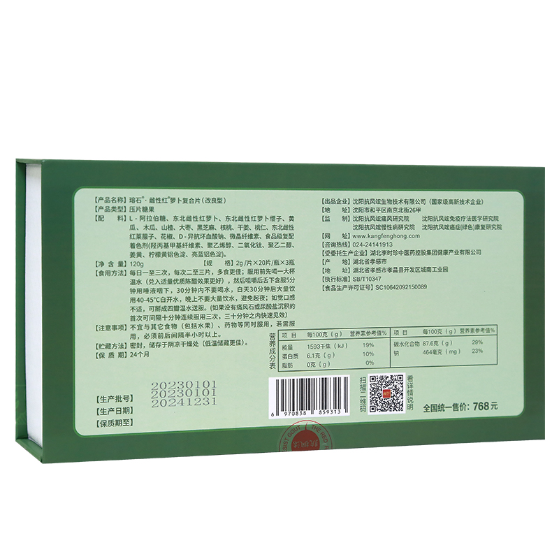 抗風(fēng)竤·瑢石雌性紅蘿卜復(fù)合咀嚼片 3瓶裝