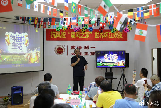 此次舉辦抗風(fēng)竤“痛風(fēng)之家”世界杯狂歡之夜活動就是借俄羅斯世界杯之機,將“綠色安全、尊重自然”的防痛風(fēng)、治痛風(fēng)理念傳播到廣大風(fēng)友中去,幫其提高如何正確治療痛風(fēng)的意識,讓風(fēng)友們在“吃喝玩樂中”趕走病痛,樂享人生。
