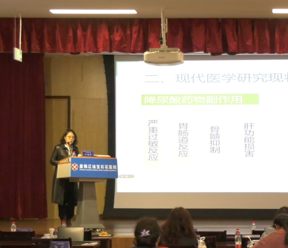 遼寧中醫(yī)藥大學中醫(yī)學院院長鞠寶兆現(xiàn)場分享了《中藥治療痛風的古代文獻研究》,就古代萊菔治痛風給予充分的論證;中國醫(yī)科大學附屬第一醫(yī)院風濕免疫科主任 魯靜現(xiàn)場分享了《痛風如何降尿酸治療》;盤錦遼油寶石花醫(yī)院副院長 武艷梅現(xiàn)場分享《痛風急性發(fā)作期的診斷與治療》;錦州醫(yī)科大學附屬醫(yī)院風濕免疫科主任 高薇現(xiàn)場分享《警惕痛風合并臟器損傷》。