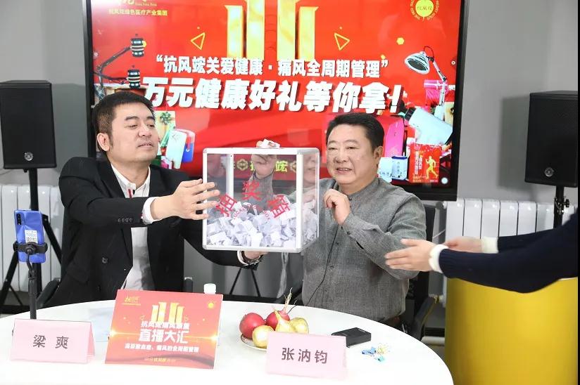 直播當晚,抗風(fēng)竤集團張汭鈞董事長、程莉琂總裁也來到直播間,與廣大風(fēng)友們互動交流、抽取幸運大獎,還介紹了抗風(fēng)竤集團今后的發(fā)展規(guī)劃——要在不斷完善升級“痛風(fēng)全周期管理”體系的同時,更好地兼顧代謝類、風(fēng)濕免疫、心腦血管三大類及慢性疾病的治療和康復(fù)!為推進全民大健康事業(yè)發(fā)展貢獻抗風(fēng)竤的全部力量!