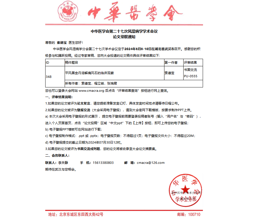 抗風(fēng)竤再迎里程碑式突破!我院兩篇論文成功被中華醫(yī)學(xué)會第二十七次風(fēng)濕病學(xué)學(xué)術(shù)會議收錄