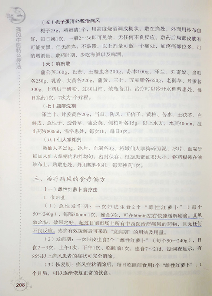【以上為《痛風(fēng)中醫(yī)特色療法》一書中對雌性紅蘿卜的經(jīng)典論述】